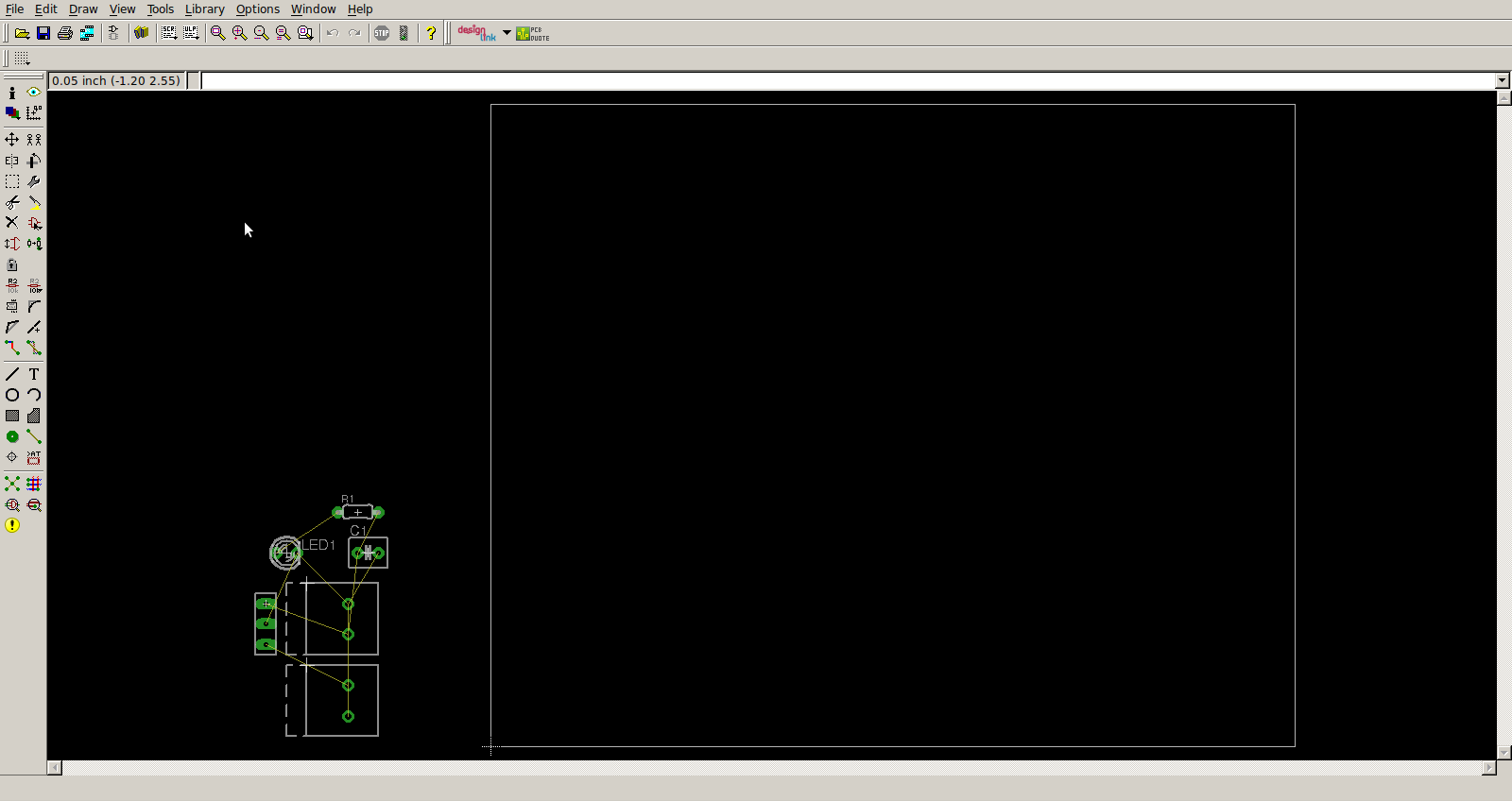 Une fois le schéma crée, on l'exporte vers la carte : File > Switch to board.